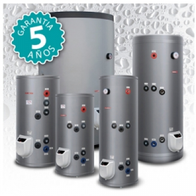 Depósitos de acero inoxidable AISI 316-L y serpentín corrugado también de acero inoxidable AISI 316-L, que debido a las turbulencias que genera el tubo corrugado y la gran superficie de intercambio del mismo, proporcionan el máximo caudal de ACS continuo con una fuente de calor externa procedente de caldera, captadores de energía solar térmica o equipos de aerotermia o geotermia.